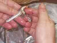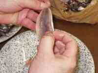 Cortamos la espina en el extremo de la aleta caudal y tiramos de ella.