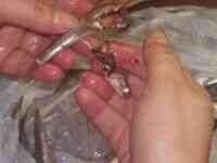 Con los dedos cortamos la cabeza presionando detras de las branquias.