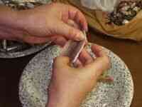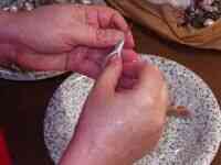 Introduciendo el dedo indice en la cavidad abdominal, sacamos la tripa.